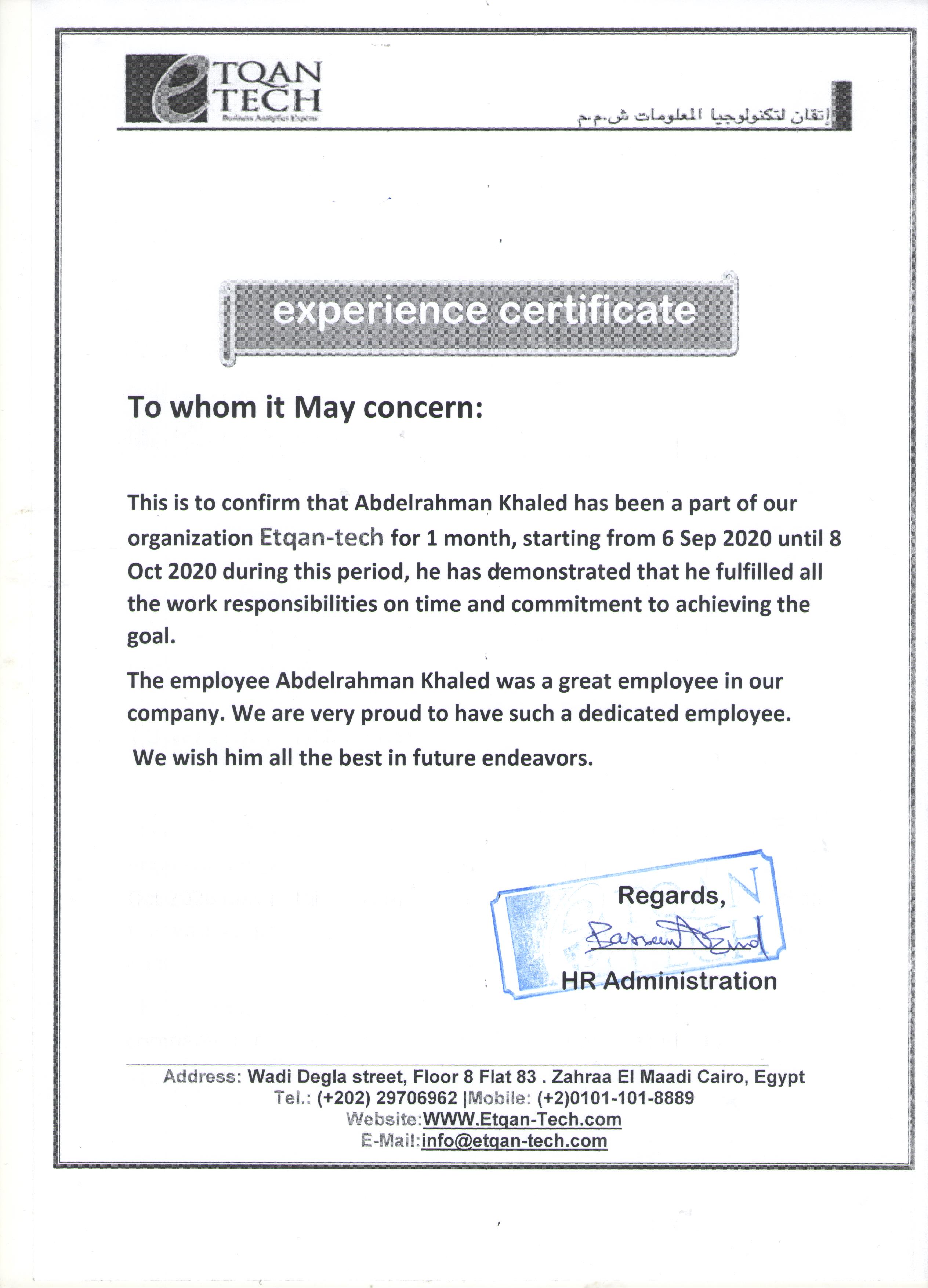 "Abdelrahman is very promising Engineer with brilliant mind and bright future. I highly recommend him. he is a real asset for any organisation"
