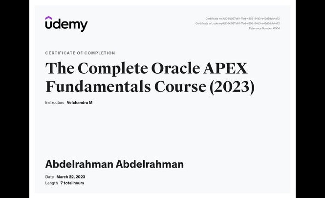 - Completed a software engineering internship focused on the Oracle stack: developed SQL and PL SQL utilities and built Oracle APEX applications, including forms, interactive reports, page logic, and validations.