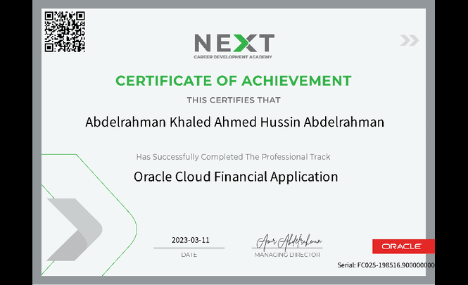 - Completed Oracle Cloud trainings and achieved OCI certification; participated in workshops on ERP integrations and data platform best practices.